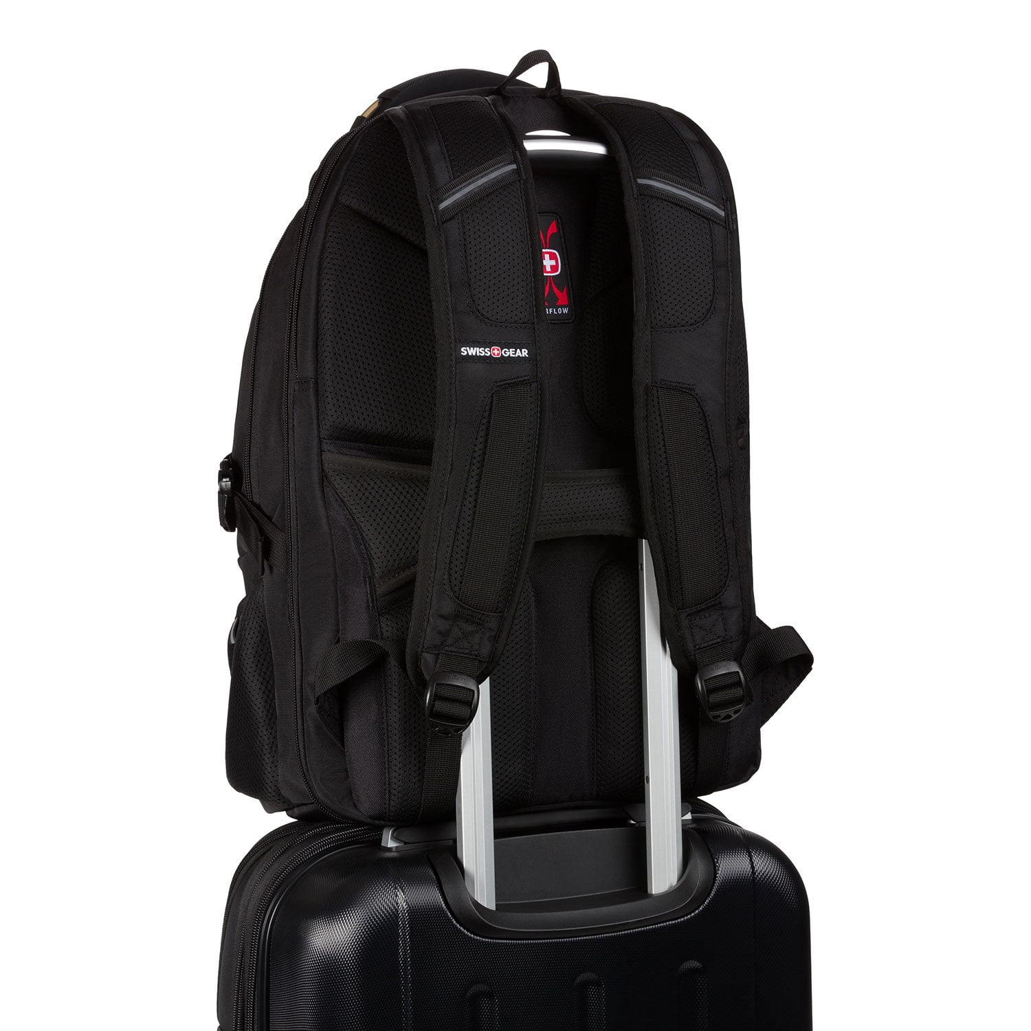 Additional features include a crush-resistant glasses compartment, multiple padded tablet pockets, side water bottle pockets, and side compression straps to help keep your contents in place. Toss in an add-a-bag panel allowing you to slide the backpack over most retractable handles of wheeled luggage, as well as fully padded shoulder straps and an Airflow back panel for hours of wearing comfort.