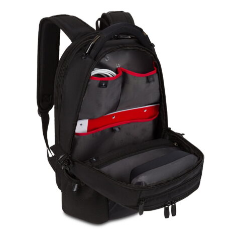 Made of durable, abrasion-resistant polyester fabric, this rugged backpack will help keep you on point. The Swissgear 3760 ScanSmart Laptop Backpack features a lay-flat electronics compartment that allows you to speed through TSA checkpoints without having to remove your 16” portable computer from the security of its padded laptop compartment. Add to this a large capacity main compartment with built-in storage pockets as well as a full-featured front organizer compartment, and you have everything you need to remain organized and productive throughout your day.