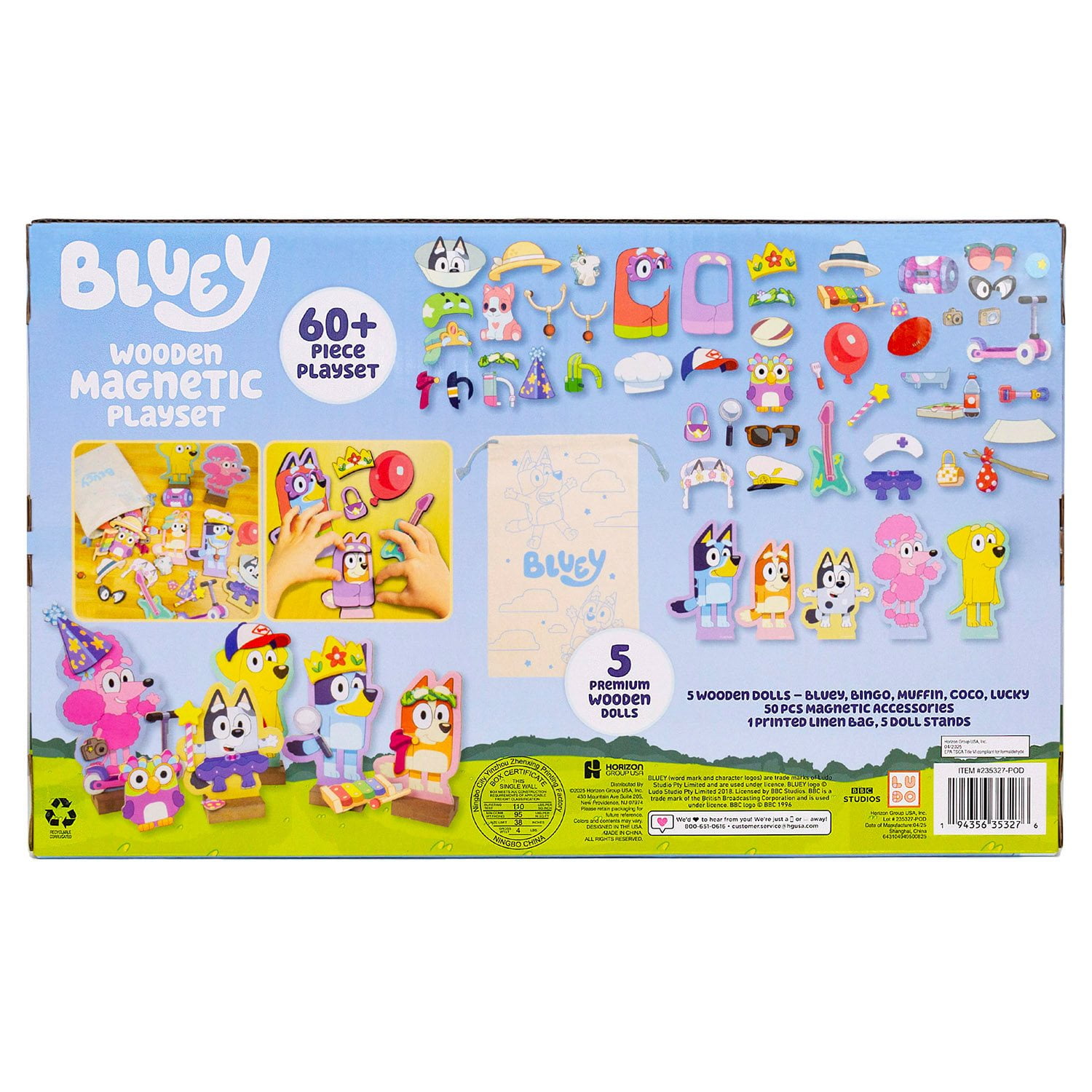 Say “G’day” to screen-free storytelling with the Bluey Wooden Magnetic Playset! This engaging set features over 60 magnetic pieces, including 5 premium wooden dolls with stands and a variety of mix-and-match accessories. Perfect for imaginative play, kids can recreate their favorite Bluey storylines or invent new adventures with Bluey, Bingo, and their best mates.