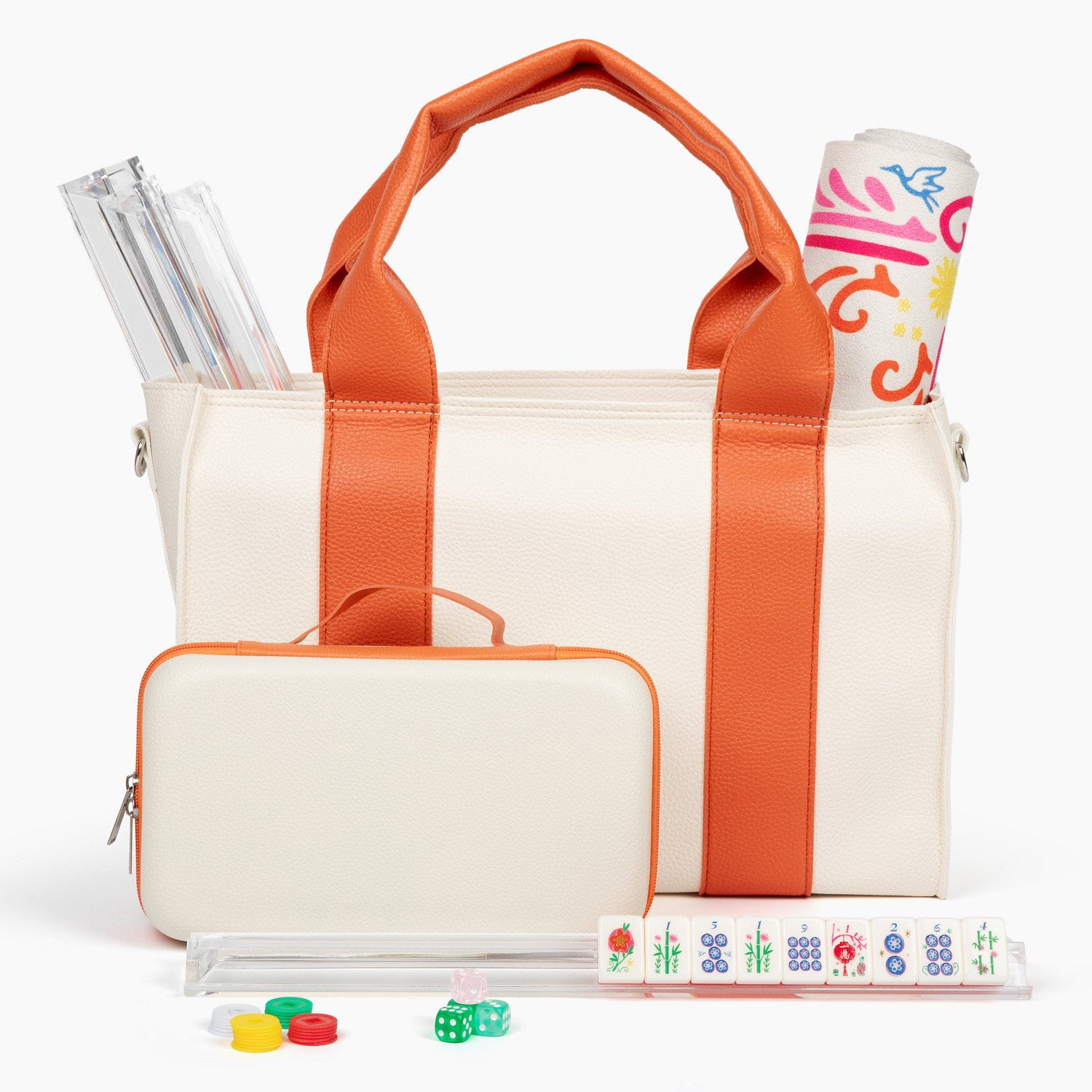 Comes with a vibrant vegan leather carrying bag and matching hard-sided tile case, designed keep your tiles safe. Durable, eye-catching, and portable, Mahjong is made for game nights, travel, and gifting.