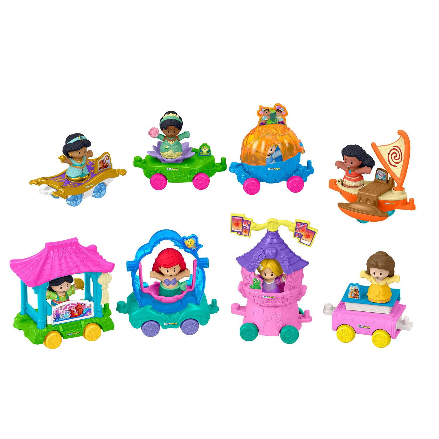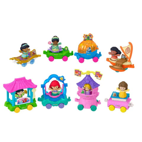 Young Disney fans can roll into enchanting Disney Princess pretend play with this 16-piece Little People toy set from Fisher-Price. This 16-piece set includes 8 Disney Princess figures and 8 matching push-along vehicles. Designed for toddlers and preschoolers, this set encourages imaginative storytelling through hands-on play. Colors and decorations may vary.