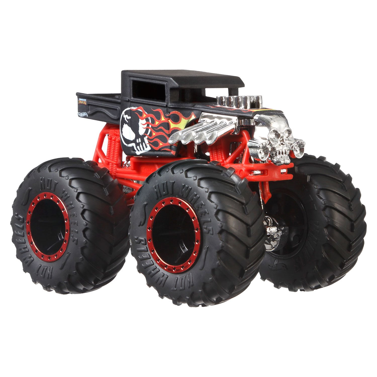 Bring the exhilarating world of Hot Wheels Monster Trucks to life with these unique and outrageous miniatures. Each truck in this collection is a 1:64 scale replica of fan-favorite personalities from the live show, featuring all the giant tires, striking decos, and distinct features that kids know and love. Create epic smashing and crashing scenarios with characters like Rhinomite, Bone Shaker, Skelesaurus, and Tiger Shark, or use this multipack as an exciting introduction to the action-packed universe of Monster Trucks. Please note that colors and decorations may vary.