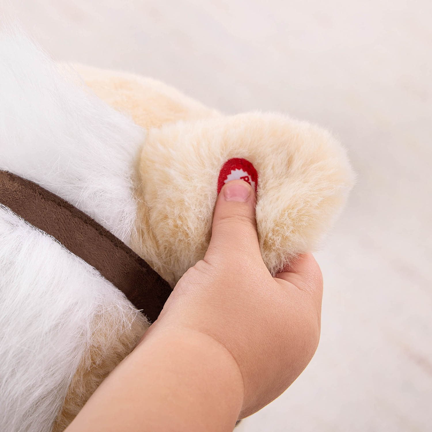• Squeezing his ears makes the horse come alive. He gallops and neighs, with his mouth moving and tail swishing back and forth