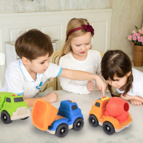 Designed with your child’s safety in mind, these vehicles are BPA free, safe, and nontoxic. They have fun shapes and smooth, round bodies that will not scratch little hands. The vehicles are also easy to move—just push and they go—no batteries are needed. This makes them perfect for both indoor and outdoor play.