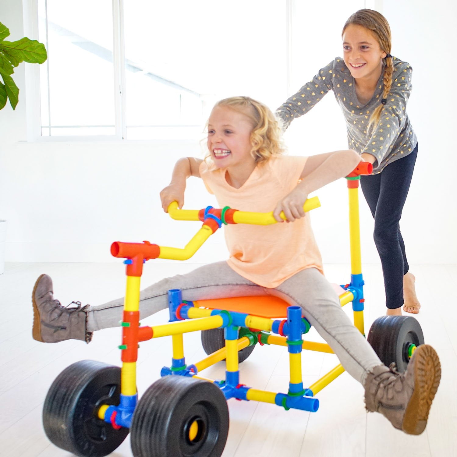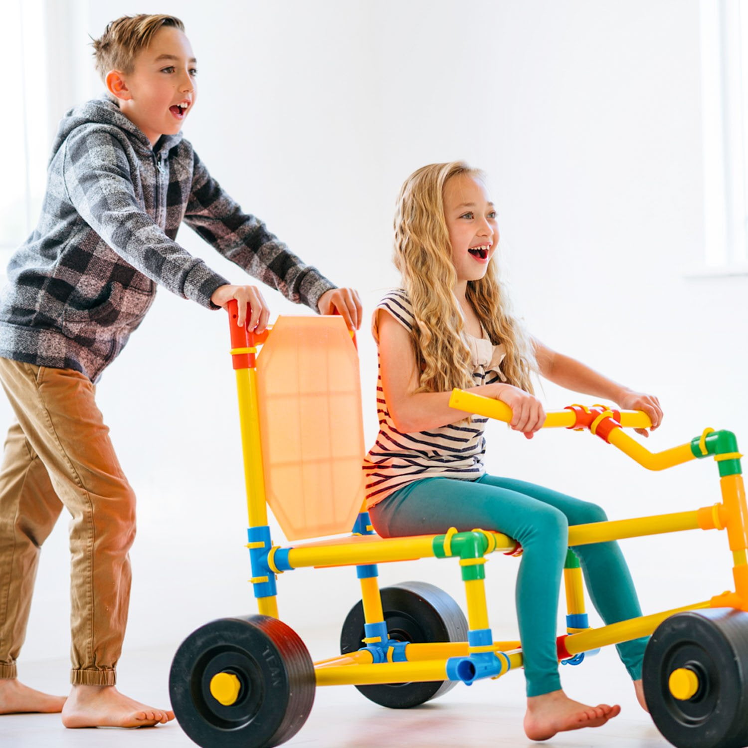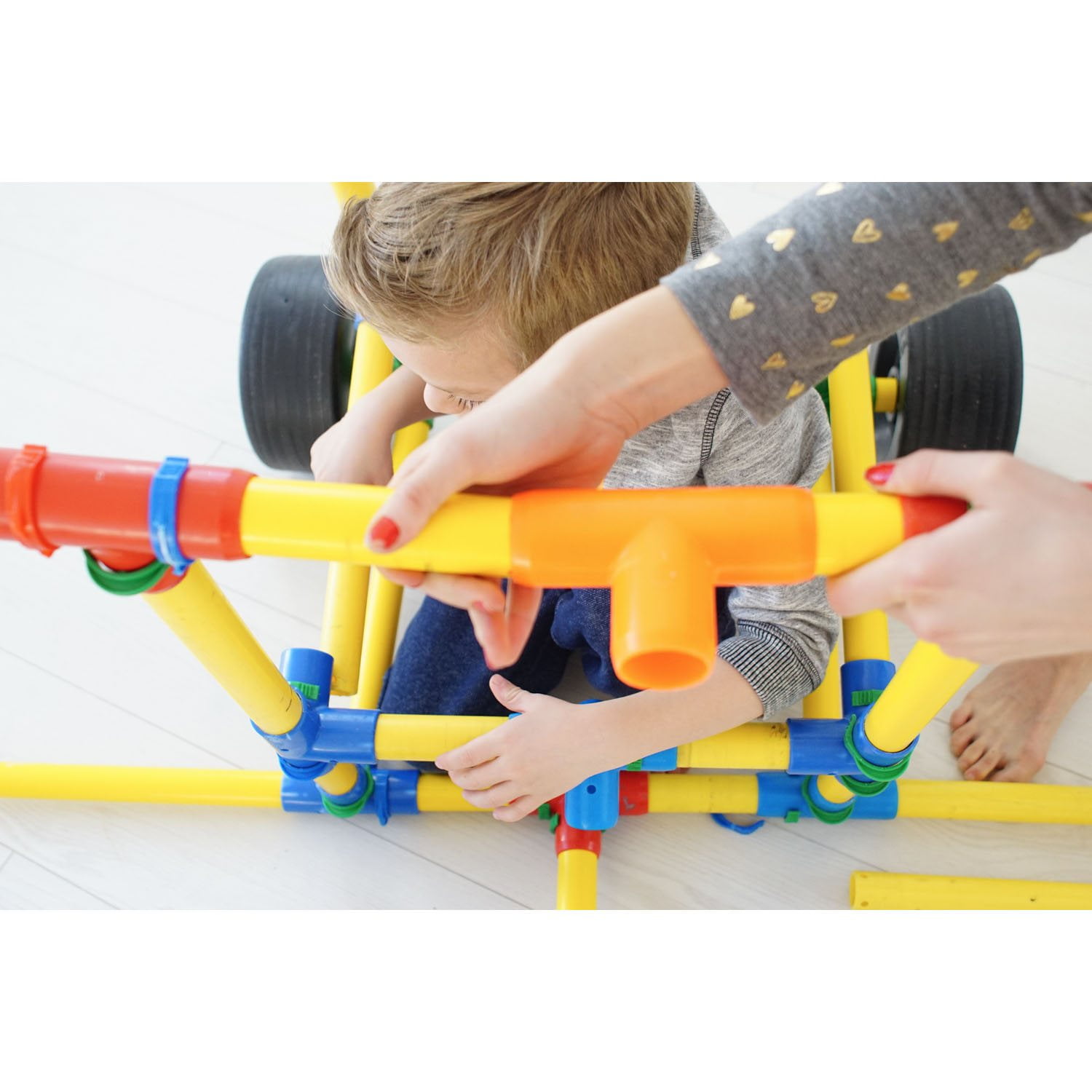 With this set, you get it all! The tubes connect with colorful attachment pieces and locking adapter clips. This allows for the toy to be sturdy and stable enough to play on unlike most constructive toys. The wheels and panels are essential. Children love building cars and testing their work with a zip around the house or the neighborhood. TubeLox is a social toy joining friends and families together while building, learning and playing. It’s not just for kids!